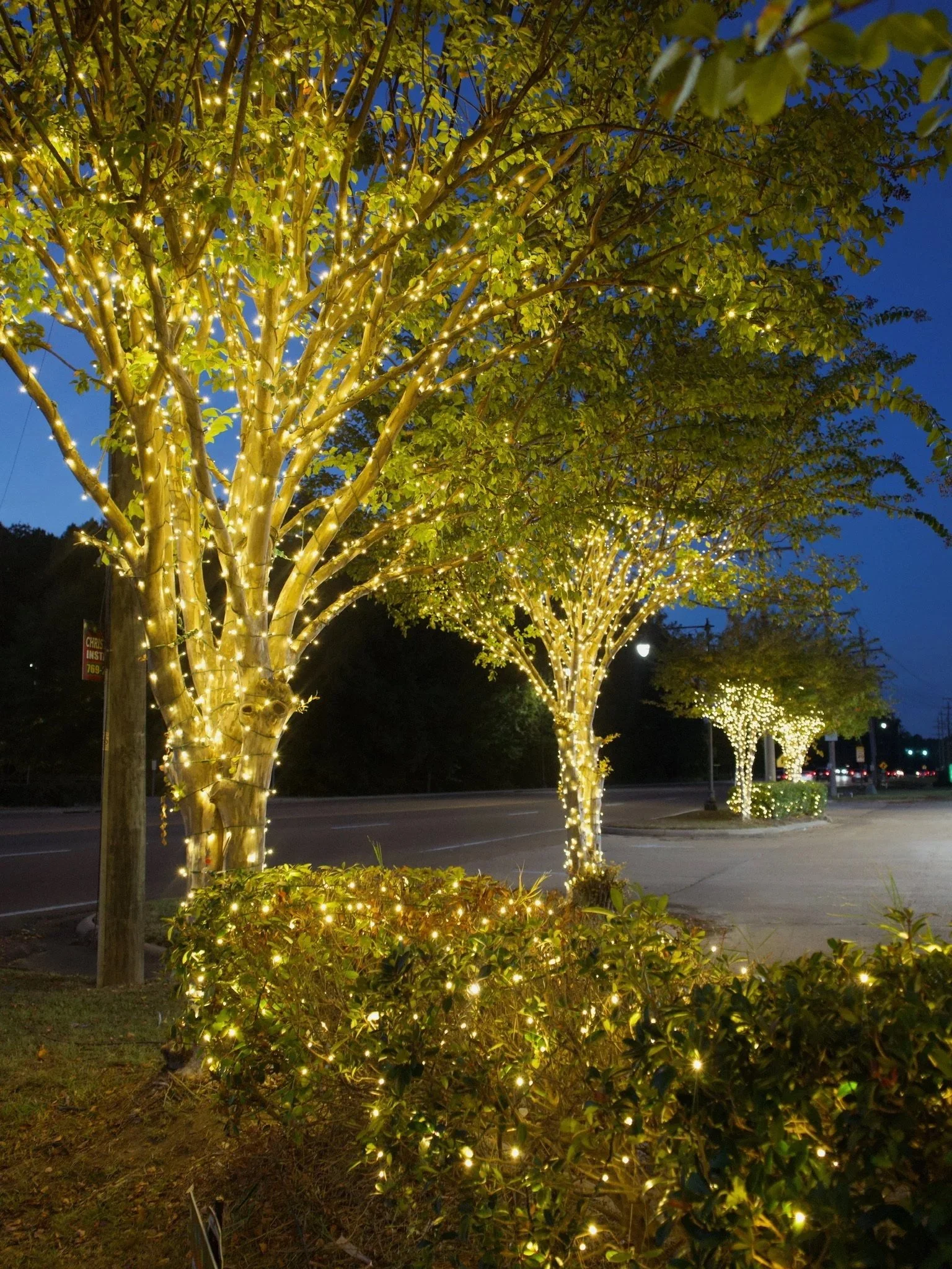 Wrapped trees enhance curb appeal by casting a warm, inviting glow that naturally attracts customers to your storefront.